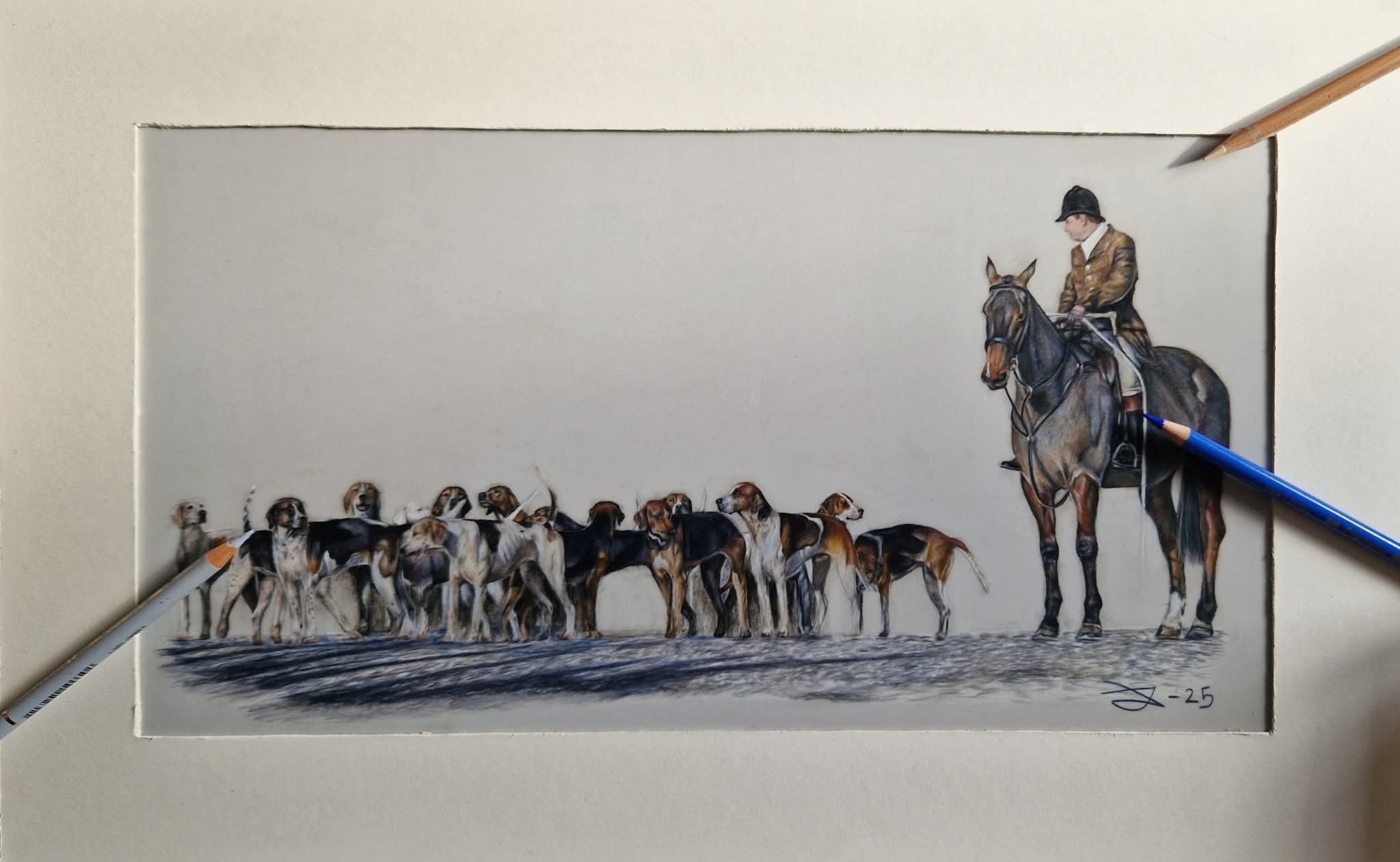 I have been drawing all my life. I was always a very artistic / crafty child, there’s drawings I have done when I was around 2 or 3 of hunting scenes, so it’s safe to say I’ve always been intertwining the rural way of life with art. Additionally, my mum and grandma are both very good at drawing, I used to watch them when I was younger, which gave me a lot of inspiration.