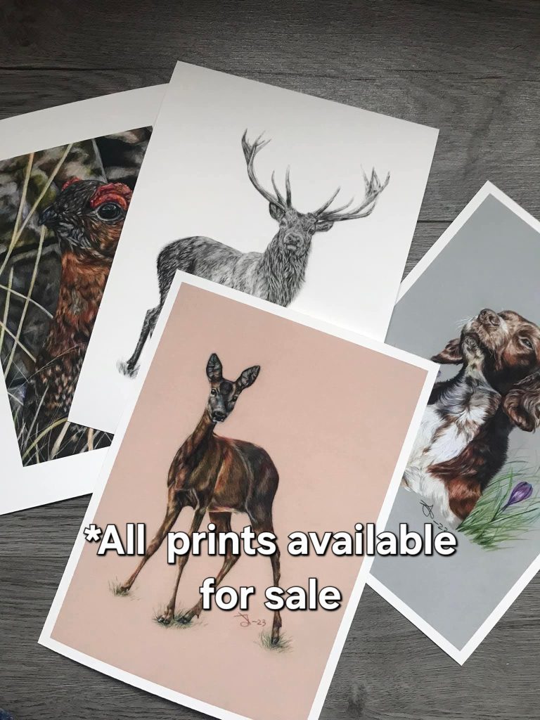 I have a number of prints and originals available for purchase, including red deer, roe deer, foxes, cows, sheep and much more!
